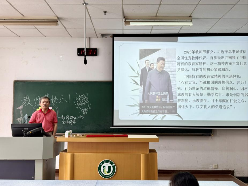 为弘扬尊师重教优良传统,传承红色基因,厚植教育情怀。9月10日下午,数学科学学院数师2402、2403团支部在三江楼309教室联合开展“传承红色基因 青春砥砺奋进”主题团日活动。学院关工委老教师卢殿臣教授应邀出席并作专题分享,与青年学子共话教育初心与使命。