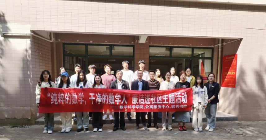 4月25日下午,数学科学学院联合公寓服务中心、毓秀书院在毓秀书院开展“纯粹的数学,干净的数学人”廉洁进社区主题活动。关工委老教师王文初受邀出席,学院党委书记张世兵、团委副书记汪文丽、学生党员代表参加活动。