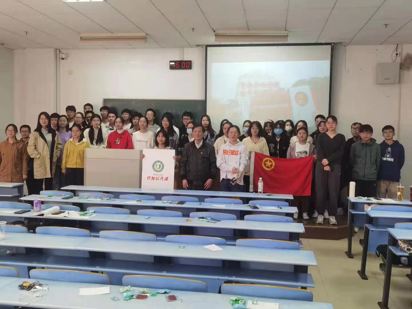 活动伊始,团支书介绍活动目的、背景及流程。活动以四种环节展开,第一个环节是介绍新时代是奋斗者的时代。在当今世界风云际会的变局之中,唯有不断学习,进而提升自己,方能实现中华民族伟大复兴。因此,同学们通过学习红岩精神,长征精神和抗疫精神,了解了老一辈人的艰苦付出,同时展望了未来、思考自己的人生;第二个环节展示学校风貌。由于新同学们对学校不够了解,团支书图文并茂地为我们展现江大的风景,使我们进一步了解母校、浓郁爱校氛围;第三个环节,同学们邀请了王文初老师进行了现场交流,王文初老师声情并茂地为大家讲述了江苏大学的校史,使同学们对江大辉煌的历史有了一个具体的认识;第四个环节是校史抢答,同学们凭借对学校的了解,进行了激烈的抢答,展现了江大学子的风采。