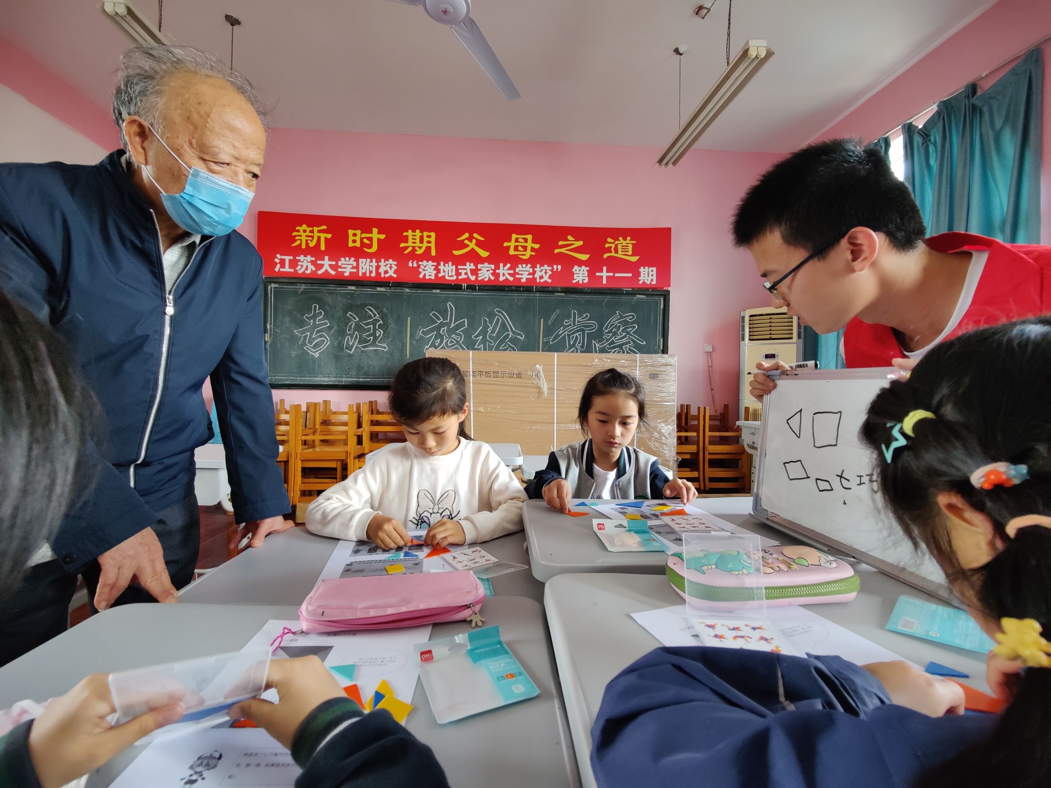 5月13日,数学科学学院的大学生志愿者走进江苏大学附属学校开展“七彩四点半”志愿服务活动,带领小朋友们学习了解七巧板的知识。本次活动特别邀请到学院辅导员尹华和学院关工委老教师张有德共同参与指导。