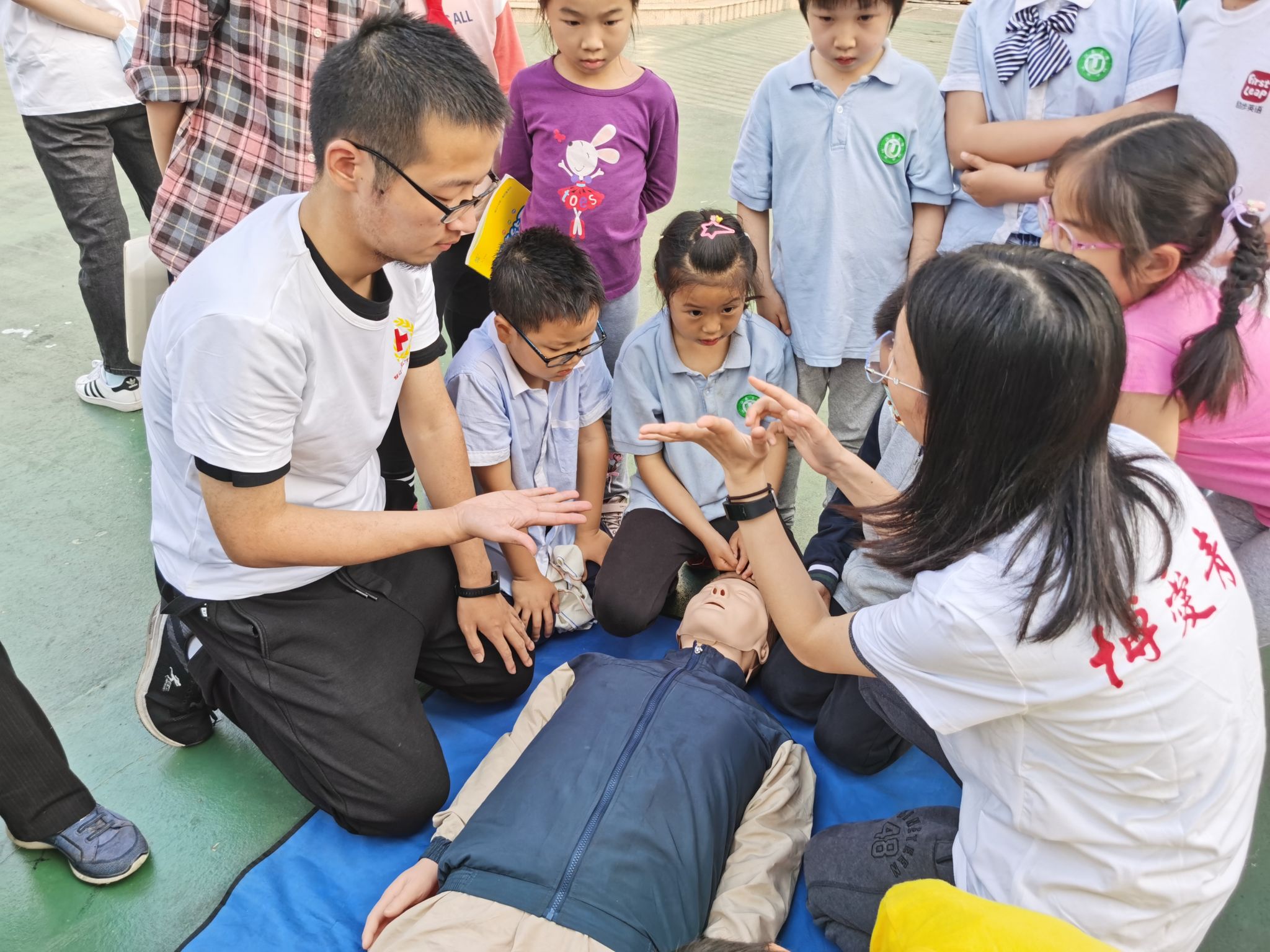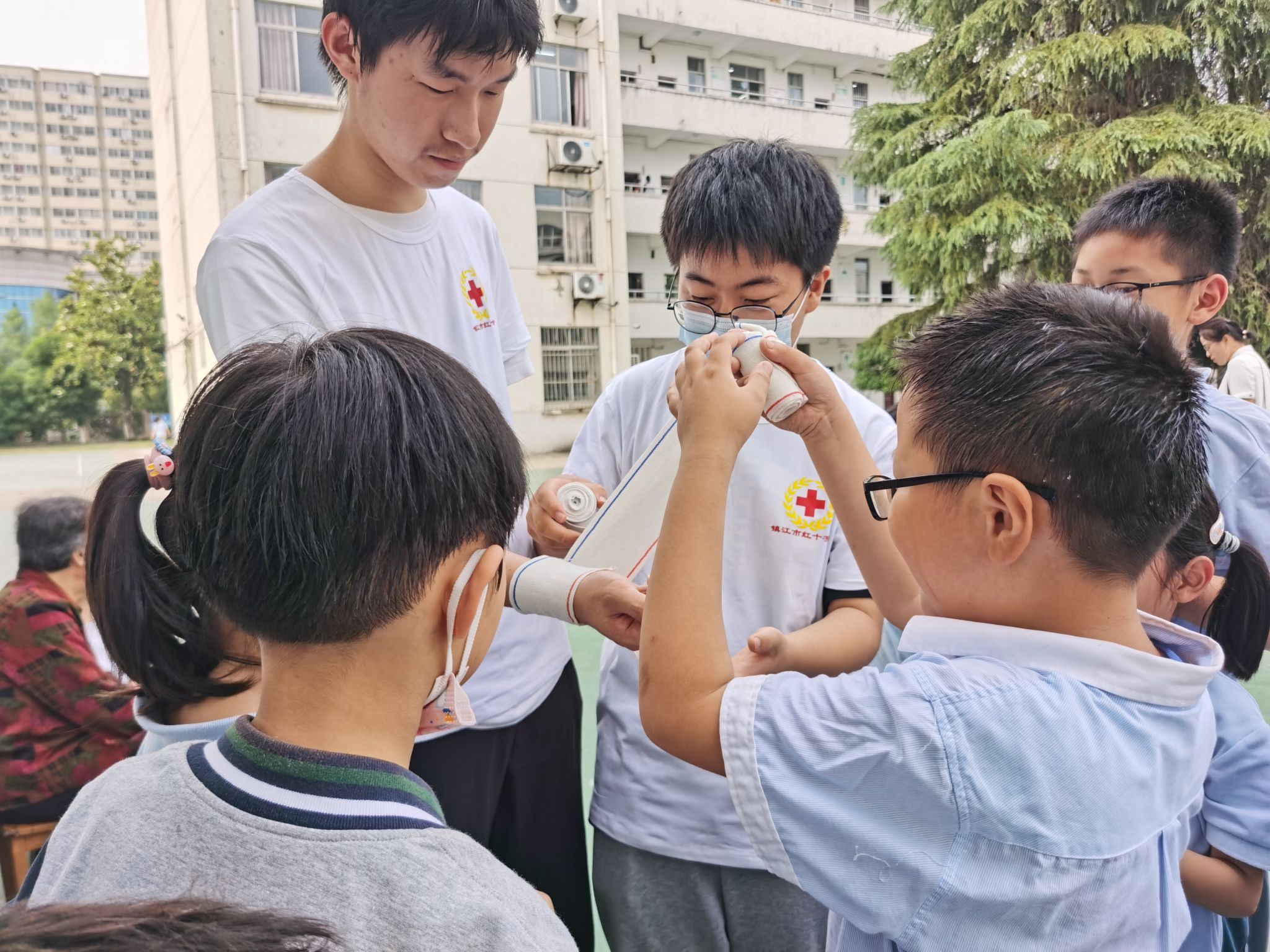 活动开始前,学院青志协积极动员在校生报名担任志愿者,并组织开展了相关业务培训。活动当日,志愿者首先现场讲解了心肺复苏的理论知识和操作要领,并使用假人模型进行演示,小朋友们围在志愿者身边认真听讲,并在志愿者手把手地细心指导下,亲身体验了心肺复苏的实操演练。随后,志愿者带领小朋友们用绷带、三角巾学习急救包扎的技能,大家兴致高涨,积极参与包扎练习,现场气氛活跃,其乐融融,大家共同度过了一段充实愉快的课后时光。